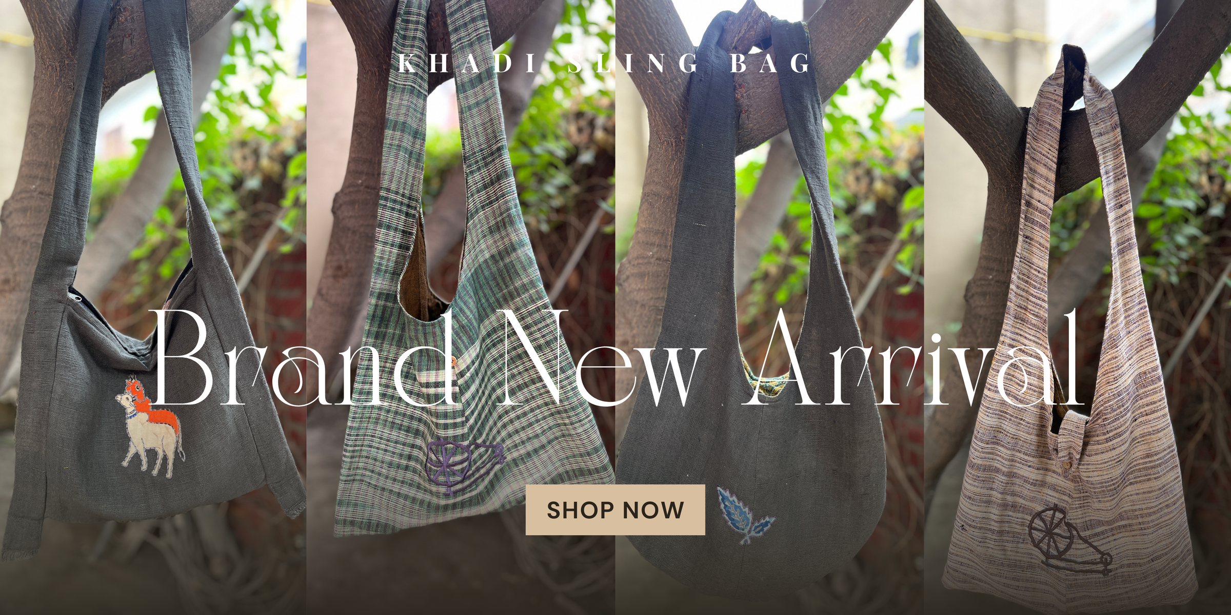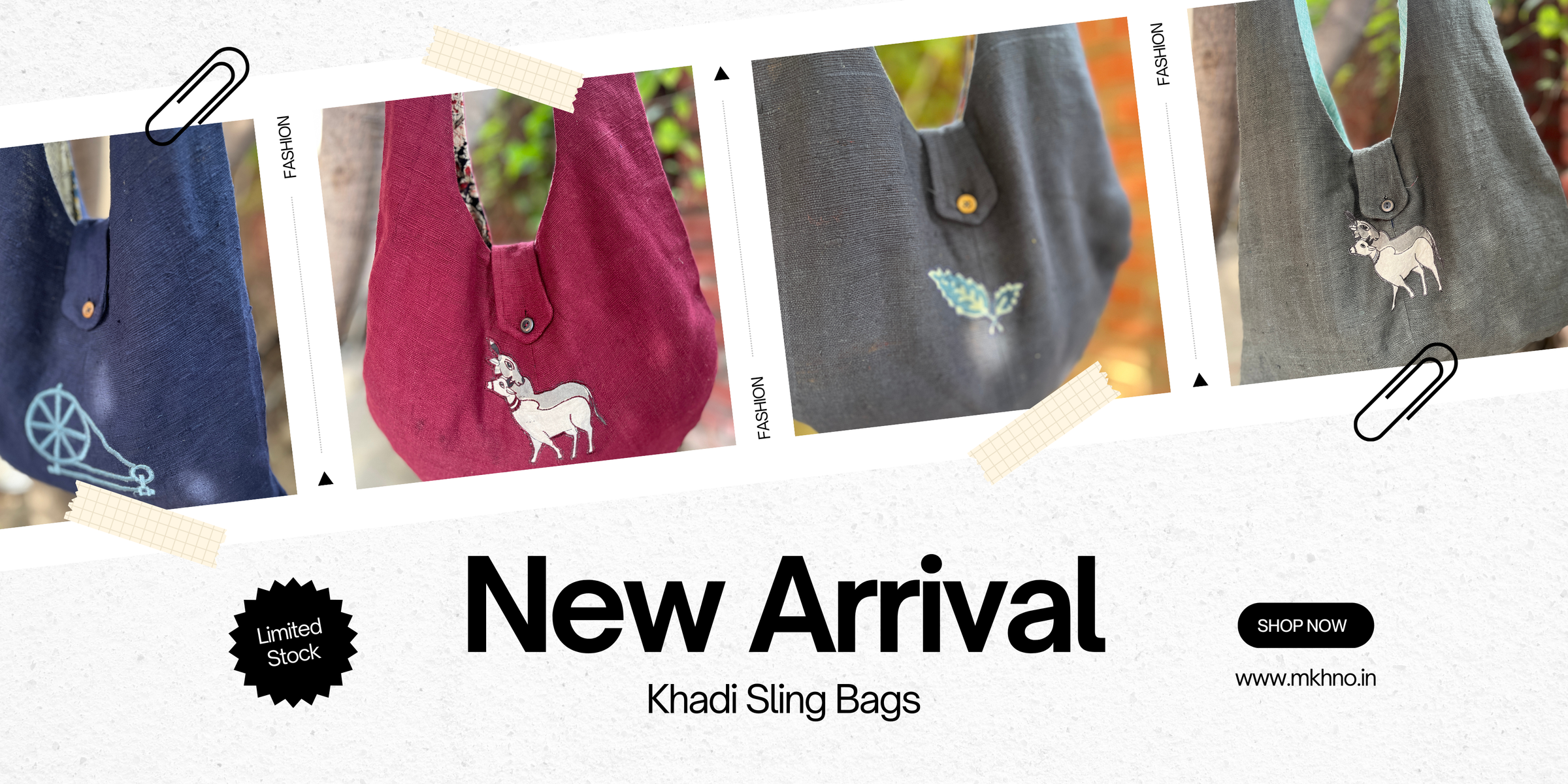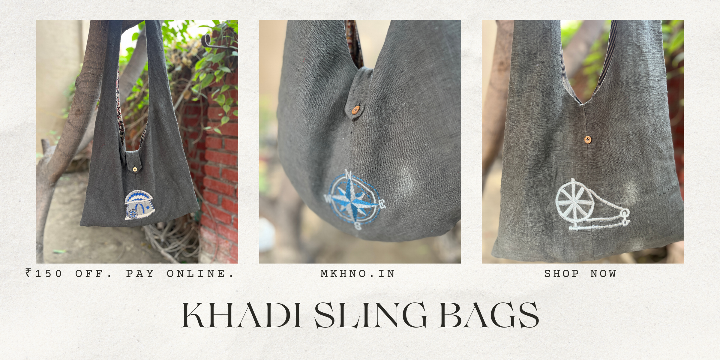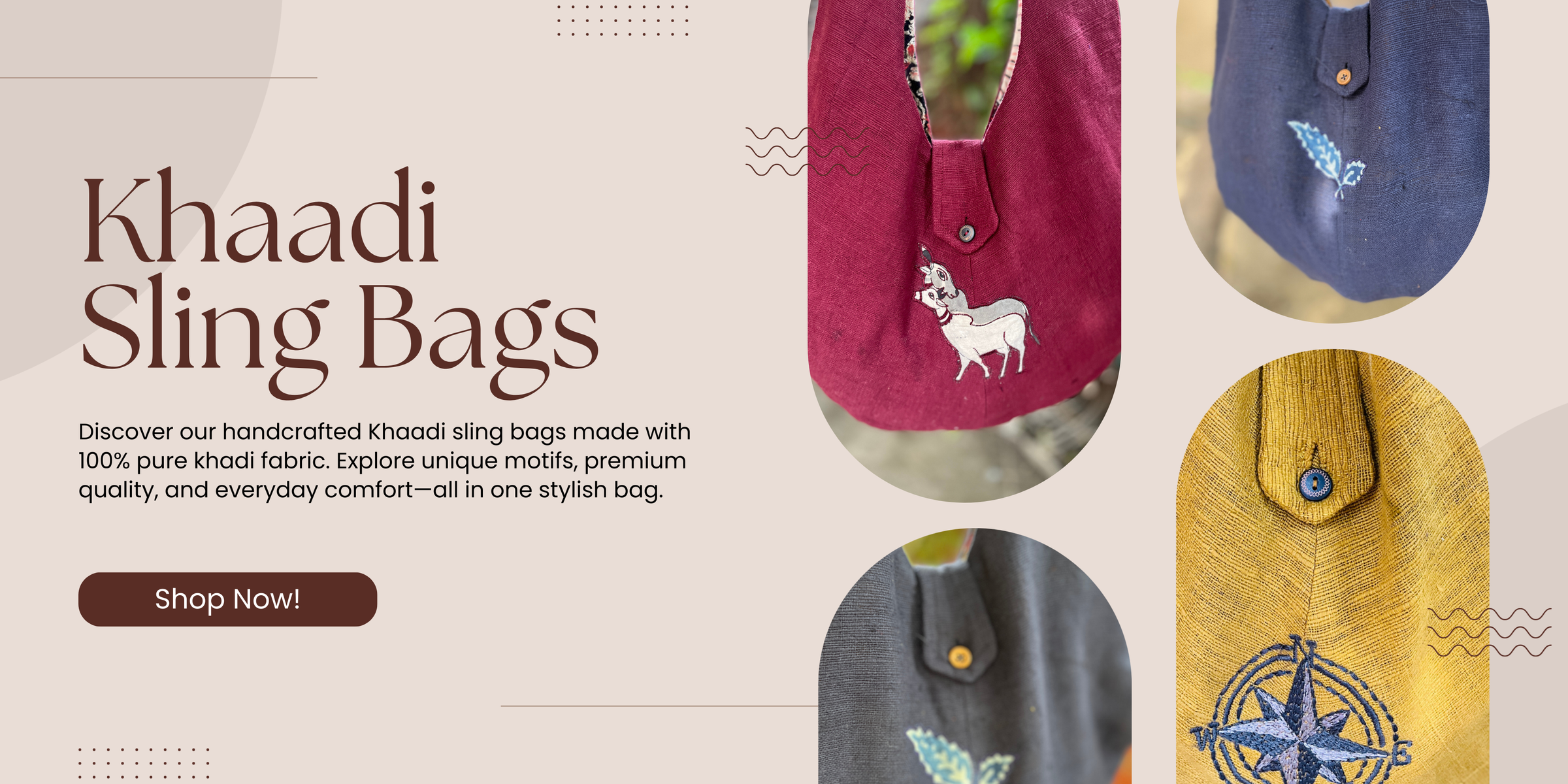 Natural Brown Khadi Sling Bag – Charkha Embroidery