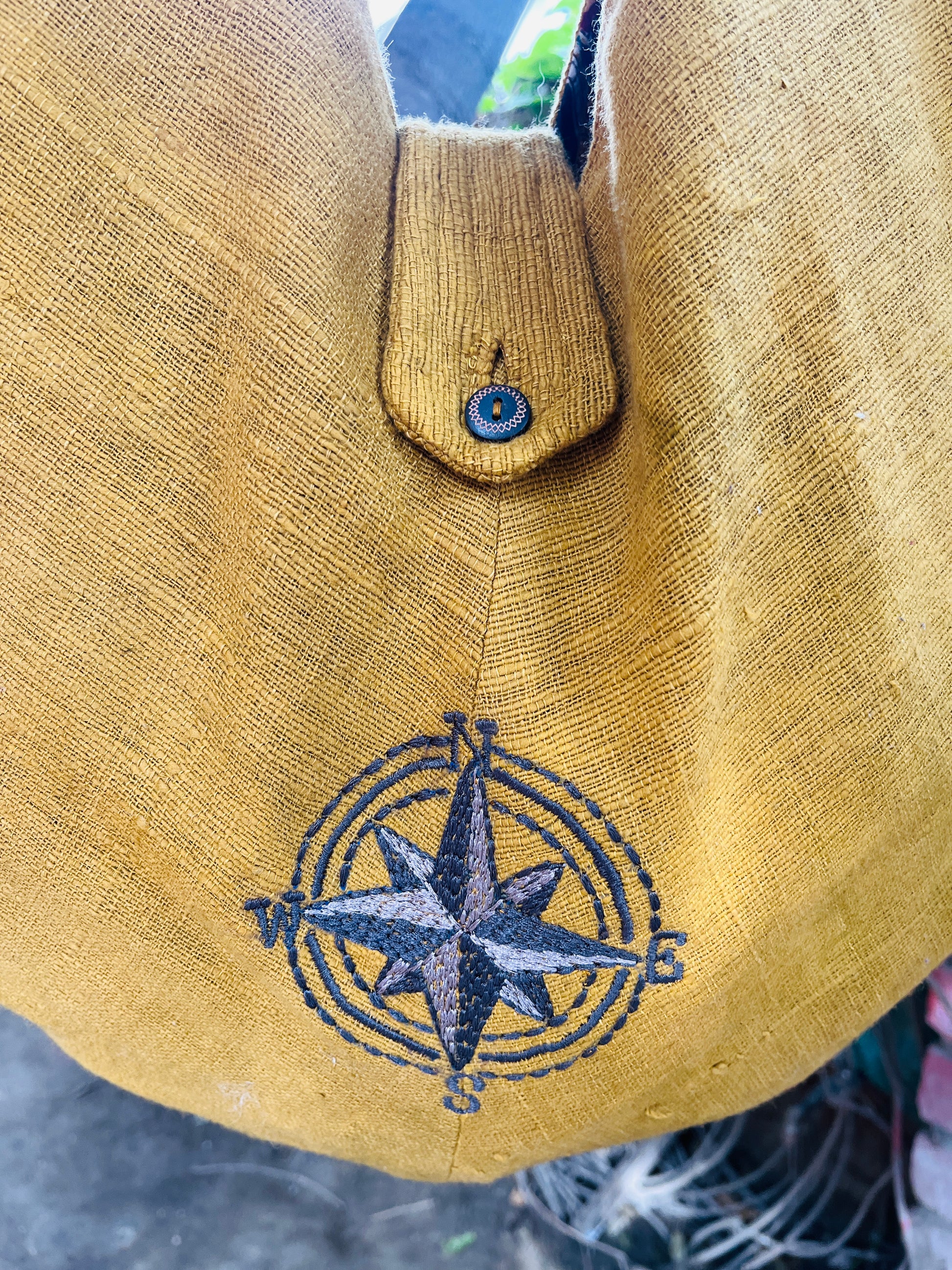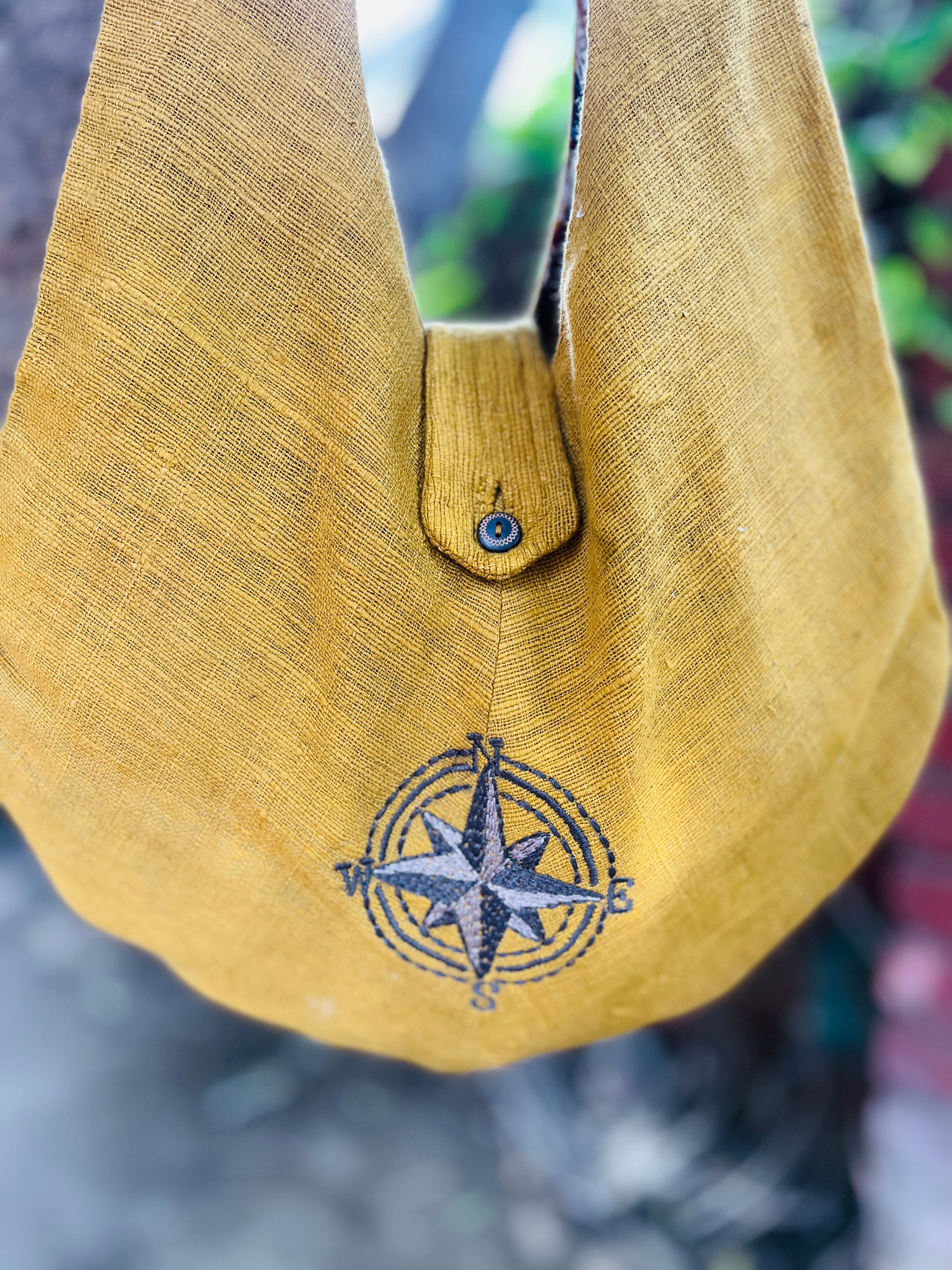Handcrafted Mustard Khadi Sling Bag with Compass Embroidery